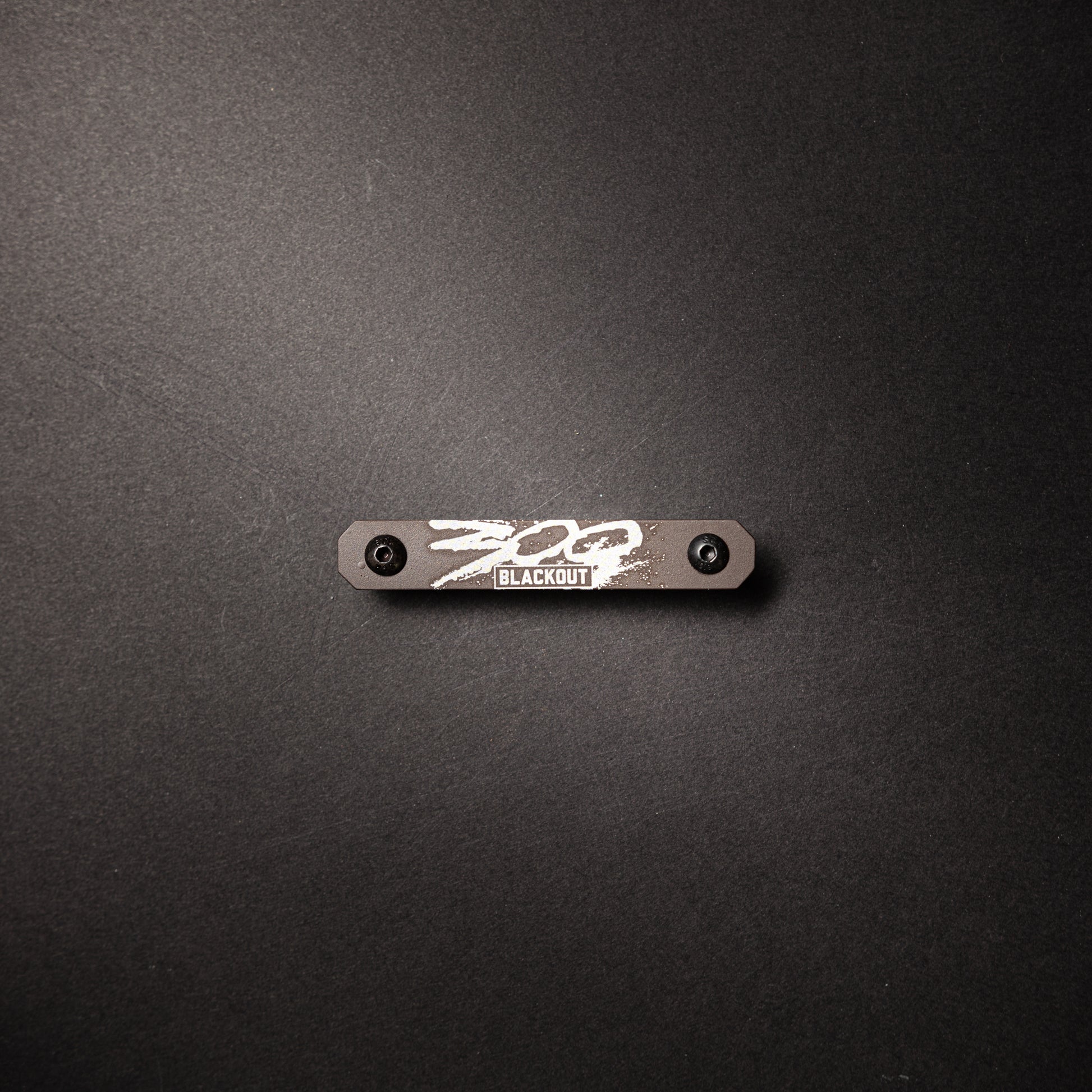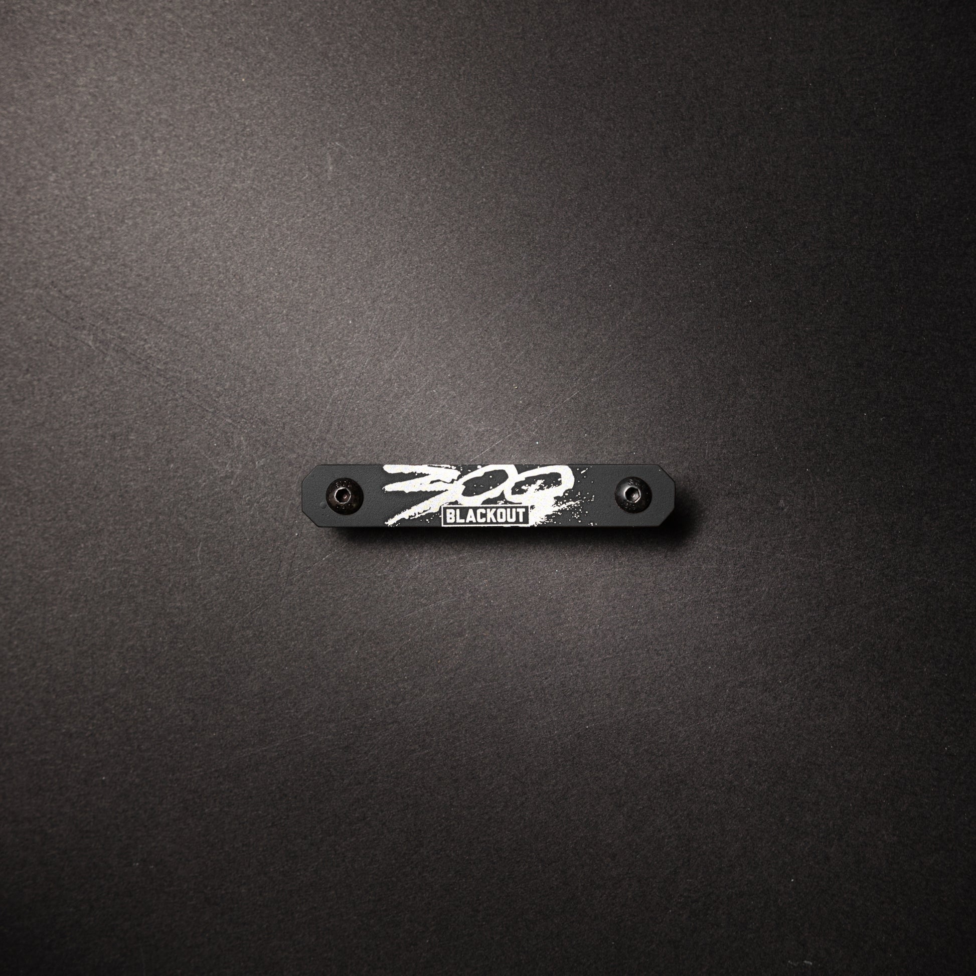 Precision-crafted aluminum MLOK tag featuring "300 Blackout" engraved in the iconic "300" movie font style. Laser engraved and Cerakoted for durability, this tactical identifier mounts directly to your AR-15 handrail, providing essential caliber identification for your 300 Blackout platform while adding a distinctive aesthetic element to your firearm.