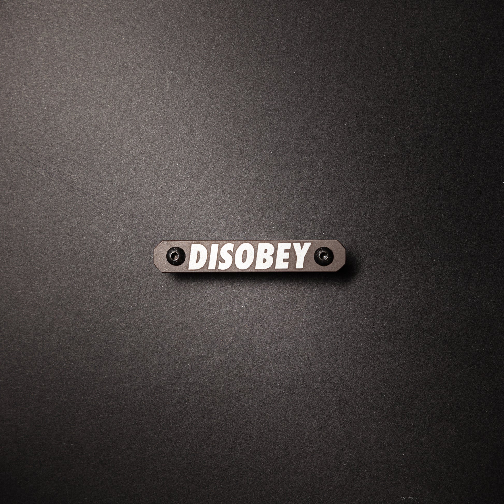 Challenge the status quo with our "DISOBEY" MLOK tag—a rebellious statement piece for your AR-15 handrail. Precision laser-engraved on Cerakoted aluminum, this small tag packs serious countercultural punch. Inspired by your favorite KICK ASS AND CHEW BUBBLE GUM 80s film, it's not just an accessory—it's a declaration against conformity. Transform your tactical setup with this bold, eye-catching addition that screams defiance.